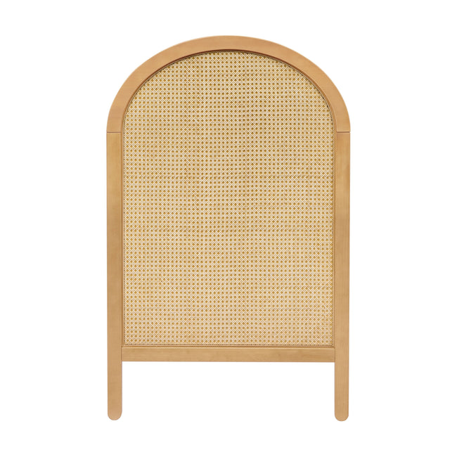 The Bondi Cane 3-in-1 Convertible Crib celebrates boho-inspired design and natural materials with its playfully arched side panels, curved feet, and woven plant-based cane. The Bondi is designed to grow with your babe using an included toddler bed conversion rail and is screened for harmful chemical emissions to ensure it meets GREENGUARD GOLD Certification.