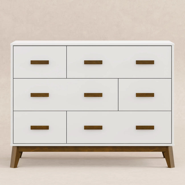 The Scoot 6-Drawer Dresser is the definition of mid-century modern style. The perfect accompaniment to your Scoot 3-in-1 Crib with matching tapered feet and two-toned or solid color detailing. With six smooth-glide drawers, this versatile unit provides a range of practical storage possibilities to suit all of your nursery needs.